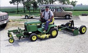Dethatching power rake for most walk behind lawn mowers with cutting deck width up to 22 in. / lawn mowers / lawn mower attachments / dethatchers. Power steering and hydraulic lift means effortless mowing and blowing. Unit also works with the john deere imatch quick hitch. Available in 70 or 80 width for a category 1 hitch.